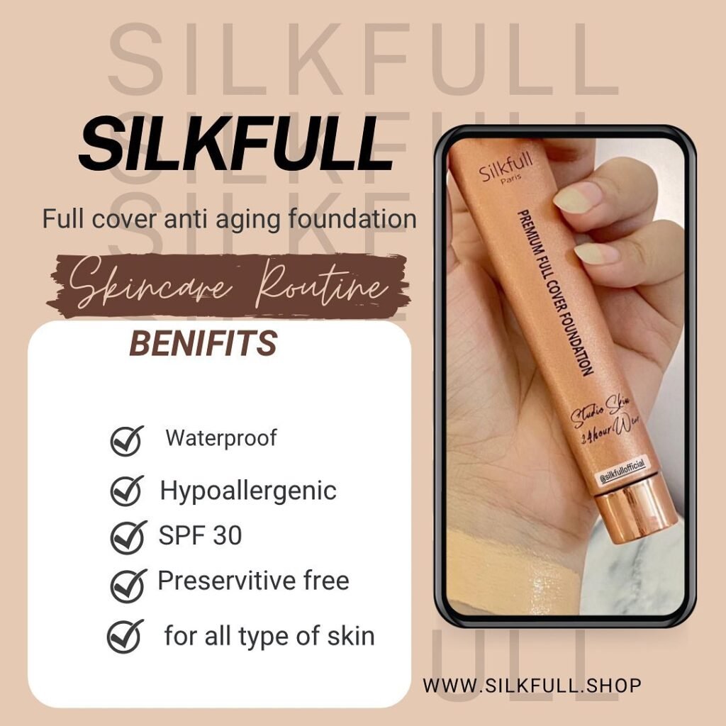 “SilkFull Premium Full Cover Foundation with studio skin finish and 24-hour long-lasting wear for flawless, smooth coverage.” ✨